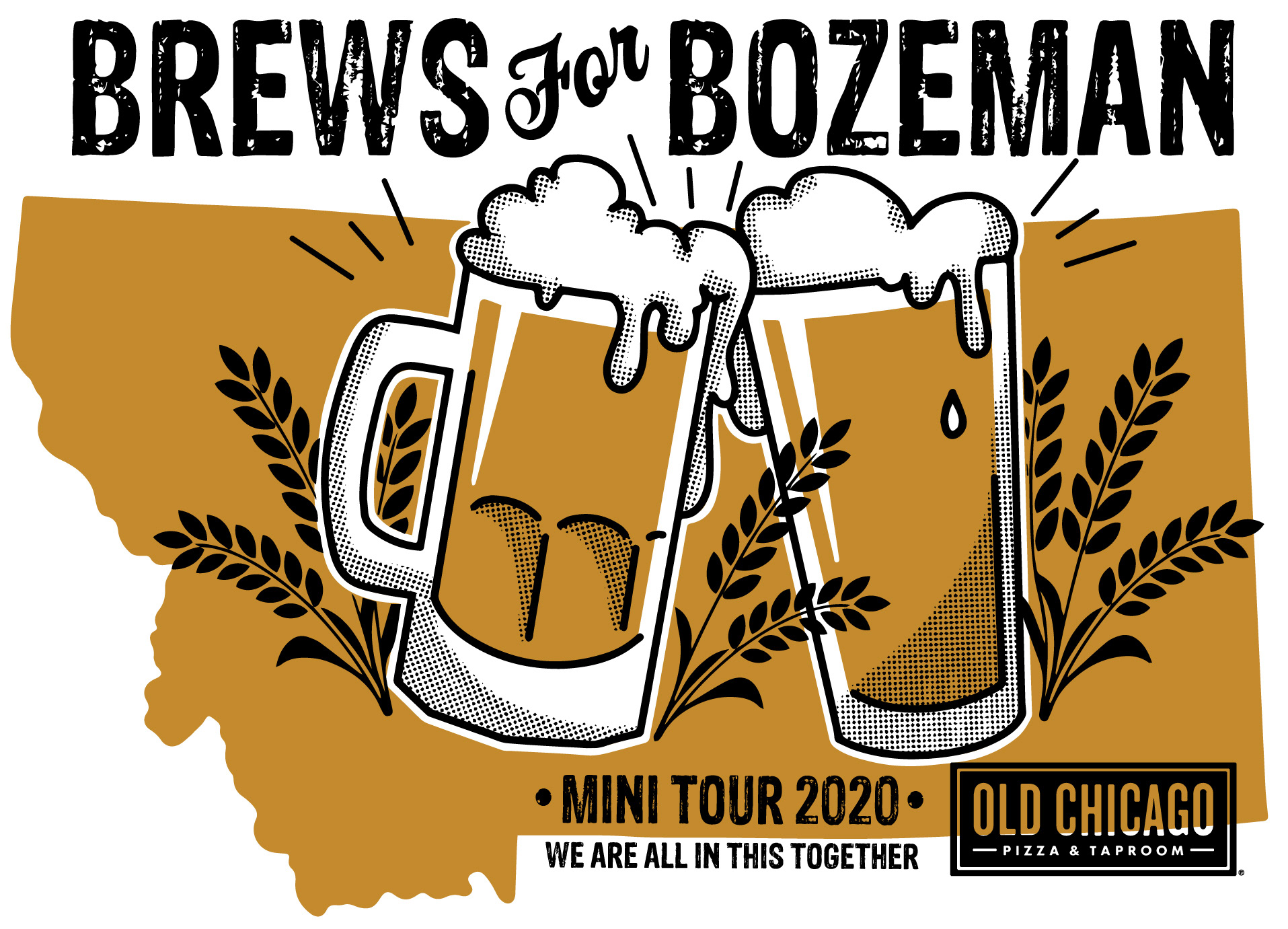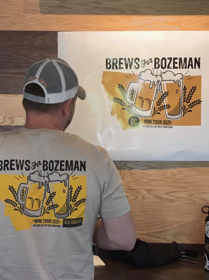 My winning T-shirt design made for a "brew tour" run by Bozeman's Old Chicago to help support local breweries set back by Covid-19.