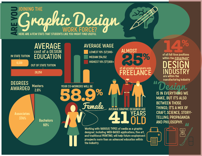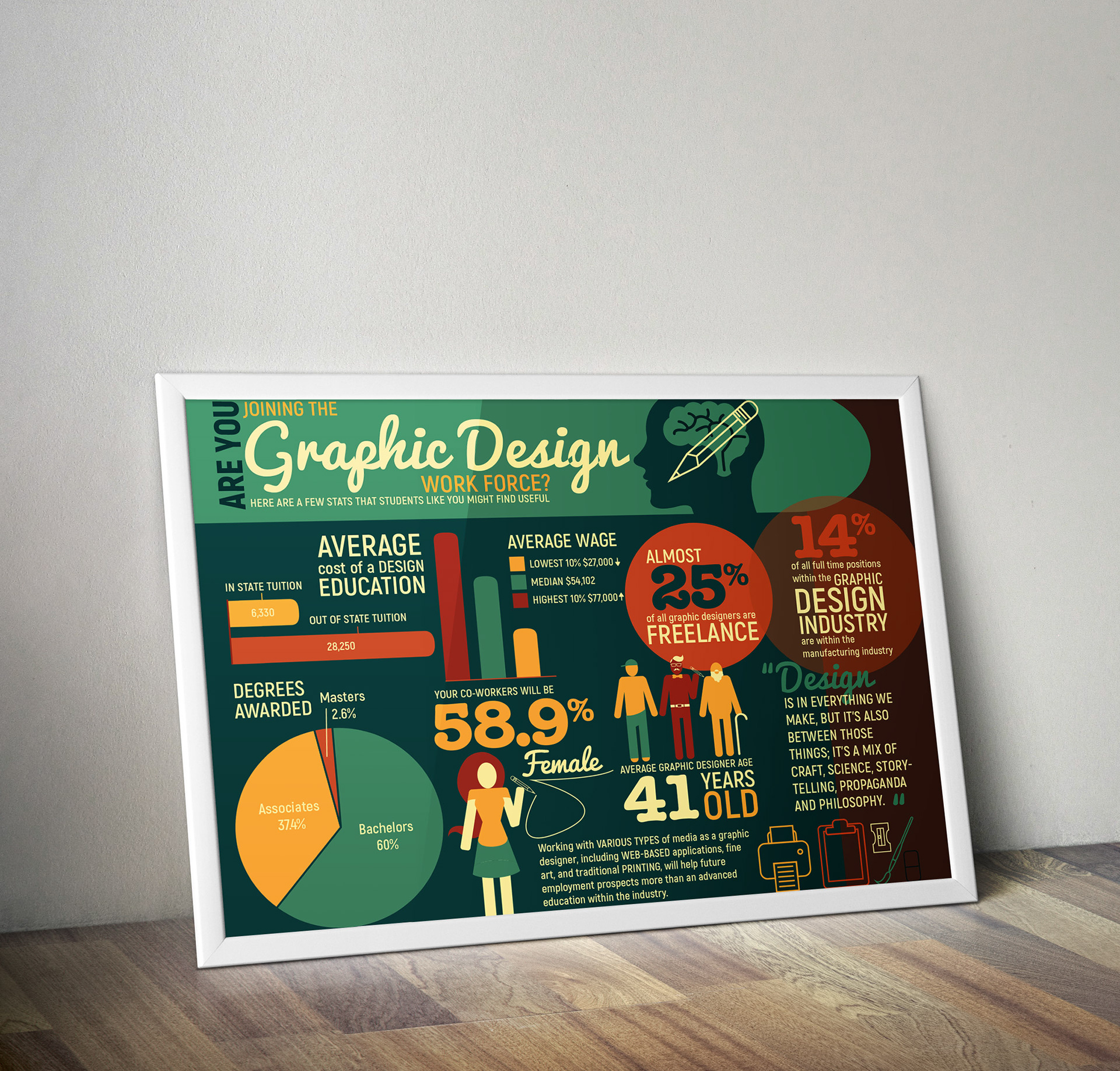 An info graphic made to give design students a few solid facts about the work force are about to become a part of.