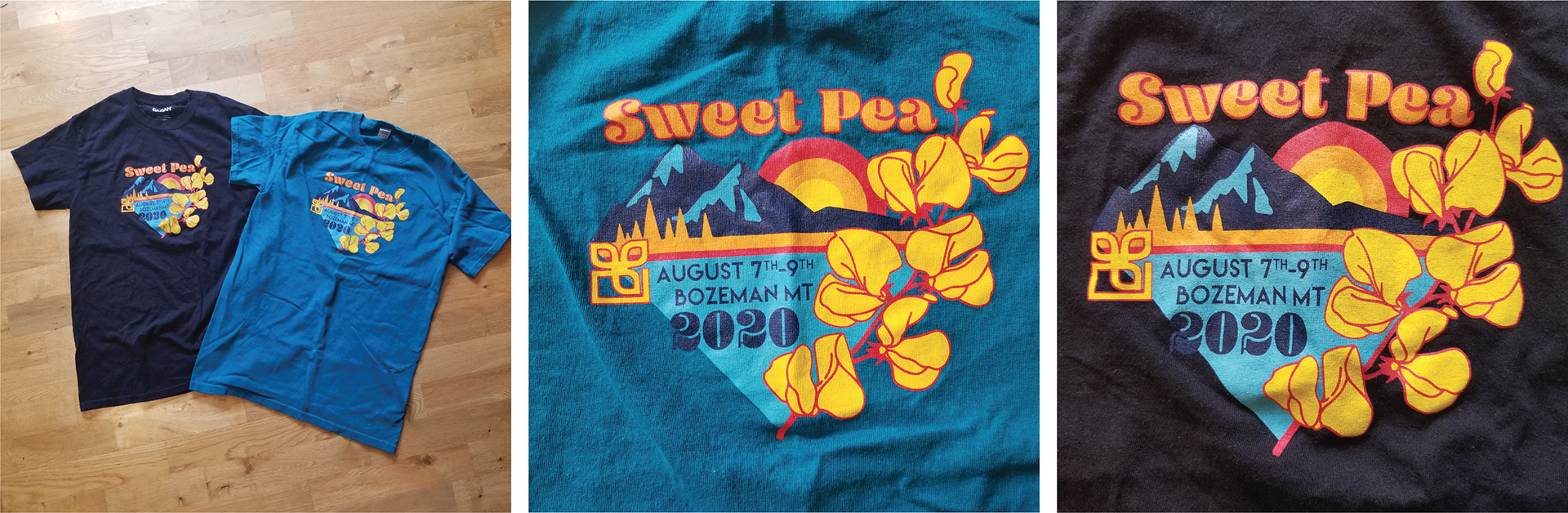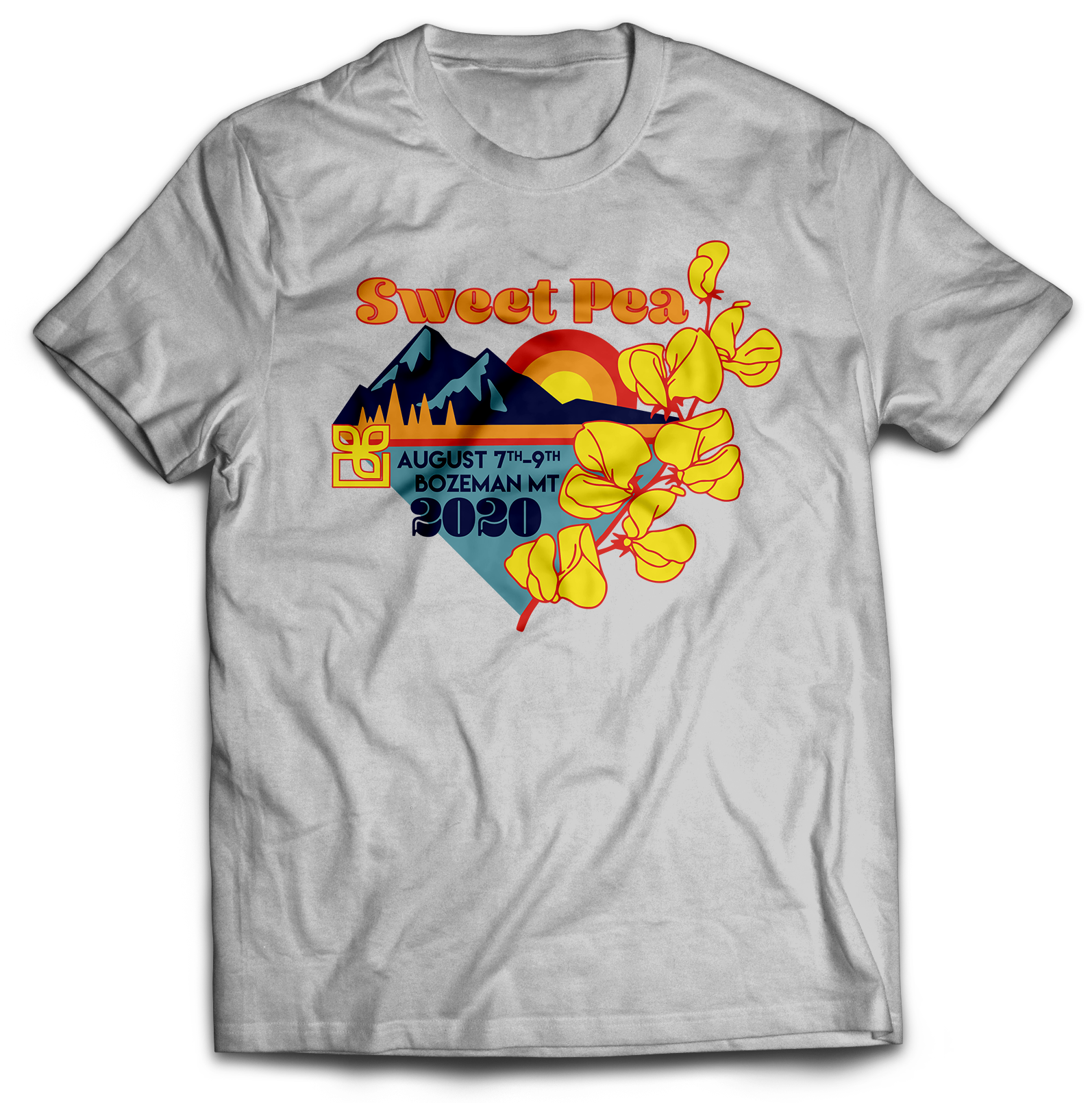 My winning T-shirt entry for the Sweet Pea Festival 2020. Retro vibes and Bozeman scenery inspired this design. The shirt was available for purchase at the