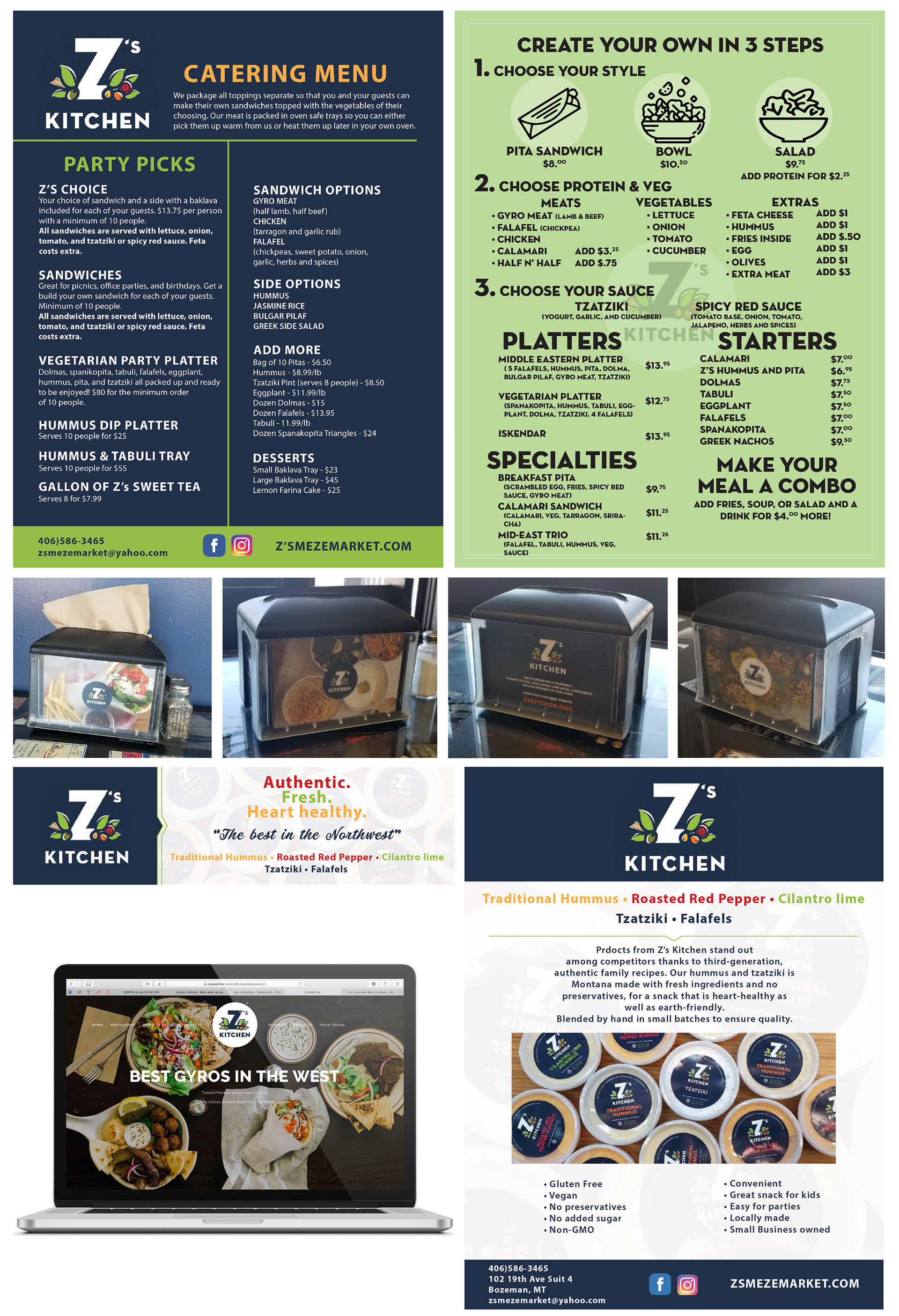 Vehicle wrap, promotional material, menus, advertisements, and website for Z's Kitchen 2019-2022. Check out the